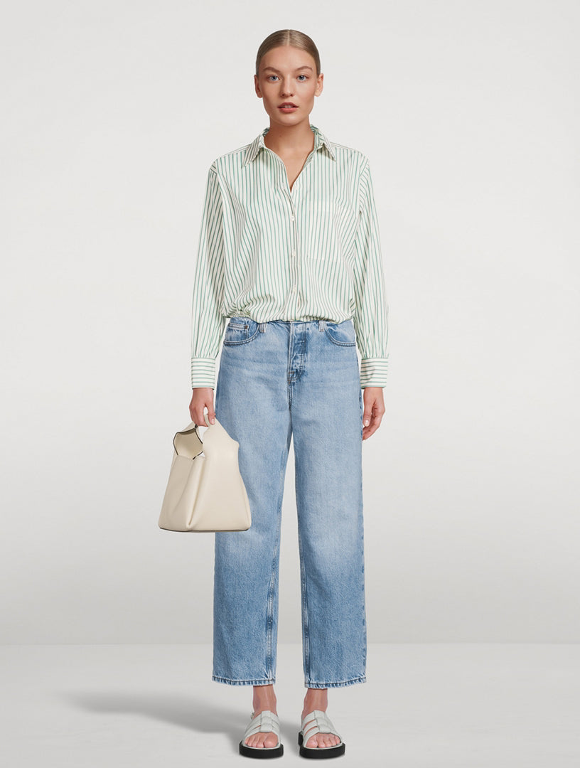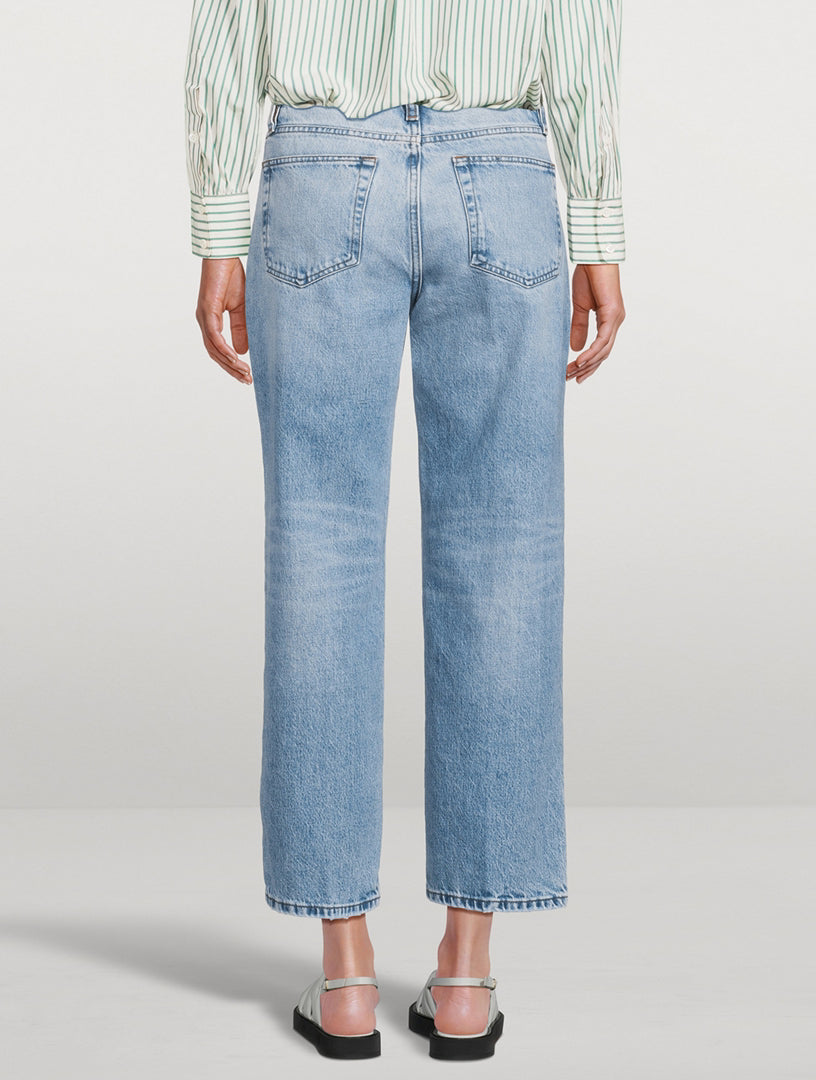 A new fit within the FRAME boyfriend line-up—The Slouchy Straight is a true "borrowed-from-the-boys" jean. Featuring a mid rise and relaxed seat for ultimate all-day comfort, and an ankle-length inseam that works with all footwear. Crafted from a FRAME sustainable denim made with recycled materials and washed to a vintage-inspired look.